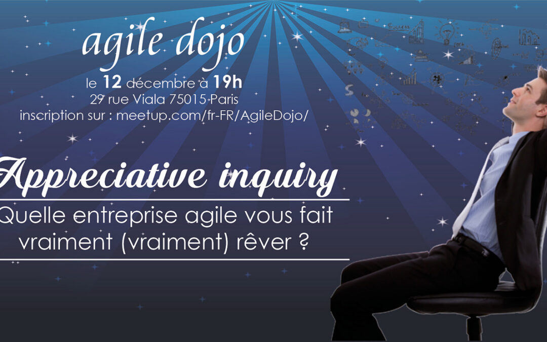 Ce mois-ci, Jean-Hugues Congia vous propose une Appreciative Inquiry autour de la thématique suivante « Quelle entreprise agile vous fait vraiment (vraiment) rêver ? »